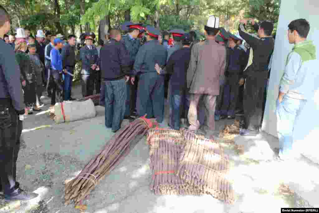 Потасовка между участниками акции и милиционерами, которые пытались запретить установку юрты на площади в Оше