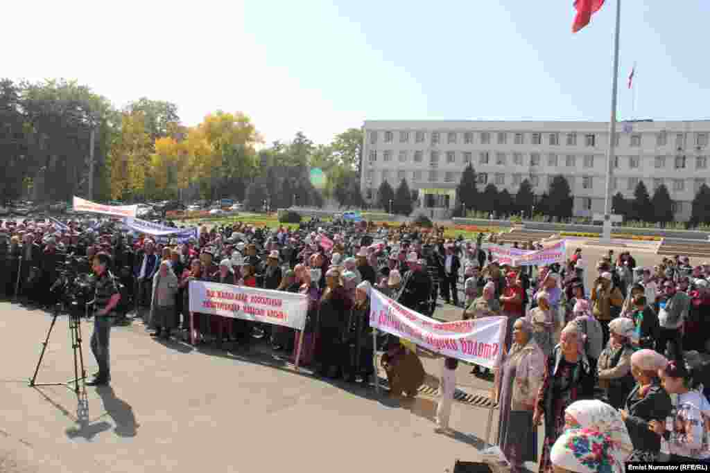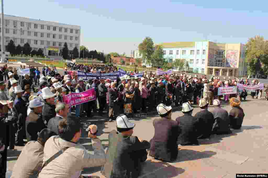 На центральной площади в Оше прошел митинг сторонников оппозиционной партии "Ата-Журт". По разным данным в акции приняли участие около 400 человек. Во время попытки установки юрты на площади возникла потасовка между участниками акции и милиционерами. Фоторепортаж Эрниста Нурматова, "Азаттык", Кыргызская служба РСЕ\РС