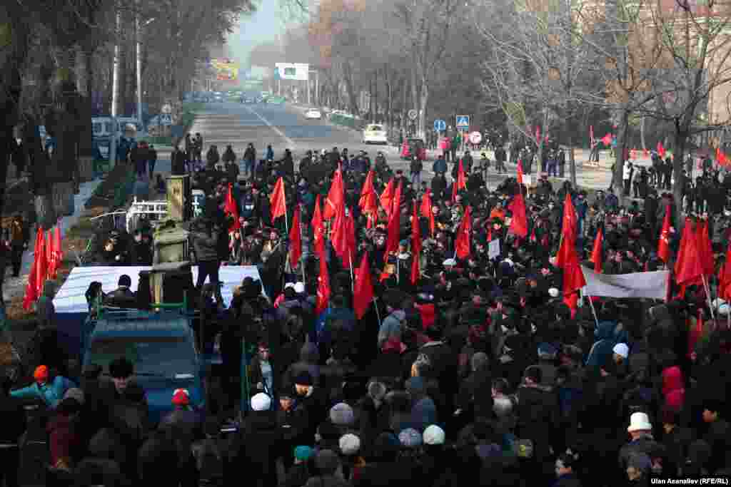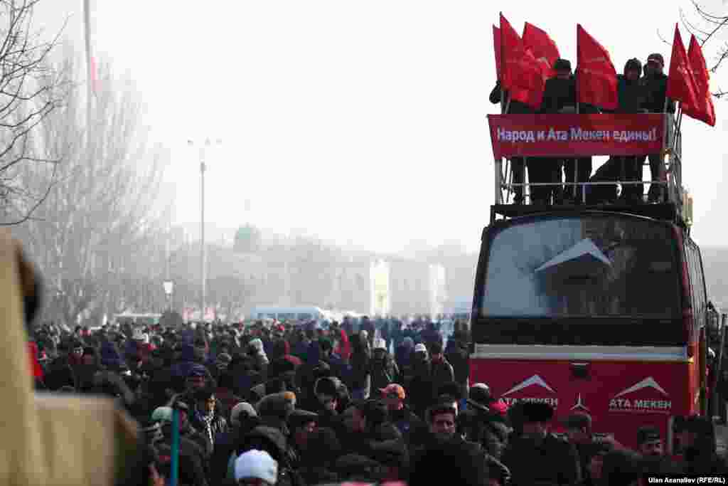 У здания парламента в Бишкеке прошел митинг сторонников социалистической партии "Ата Мекен". По разным данным число его участников составило до 3 тысяч людей. Сегодня в Жогорку Кенеше рассматривают итоги временной депутатской комиссии о мародерствах во время апрельских событий 2010 года. В итоговых документах комиссии фигурируют имена лидеров "Ата Мекена". "Азаттык", Кыргызская служба РСЕ\РС